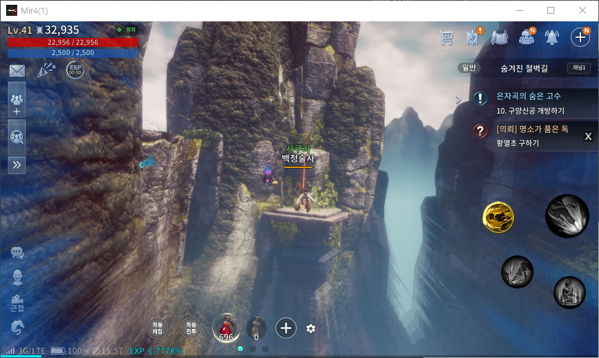이렇게 경공, 경공, 날아가기를 통해서 가시면 한 번에 도착합니다. 이제 황열초를 채집해주시면 명소가 품은 독 퀘스트가 완료 됩니다.