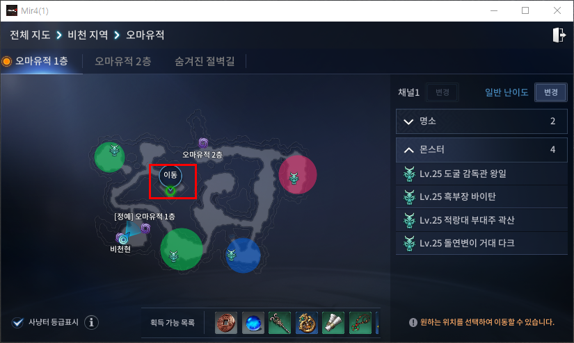 윤석과 대화를 진행해보시면 퀘스트 단서를 알려줍니다. 이름없는 무덤 위치는 "오마유적 1층"이라고 알려줍니다.