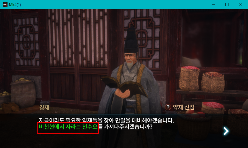 미르4 약재 선점 - 천수오 찾기 비천성 의뢰퀘스트