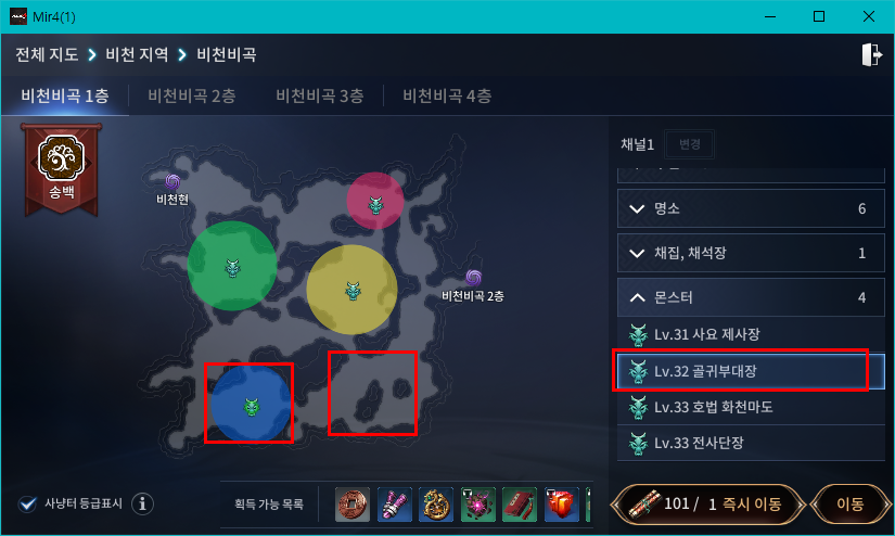 갑골문은 위 지역에서 드랍이 됩니다. 가장 편한 이동은 비천비곡 1층에 몬스터 골귀부대장을 클릭 후 이동하는 방법입니다. 또 다른 방법으로는 골귀부대장 우측 지역에서 사냥을 하시면 좀 더 빠른 퀘스트 완료가 가능합니다.